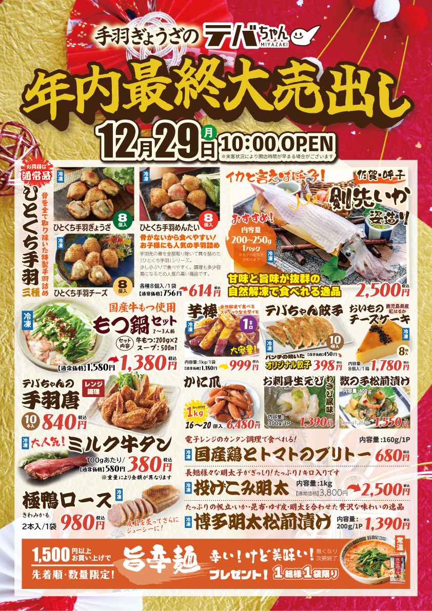 今回は年内最終大売出しということで、LINEクジを実施いたしません。